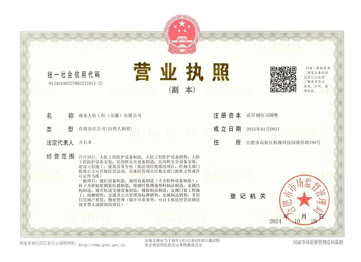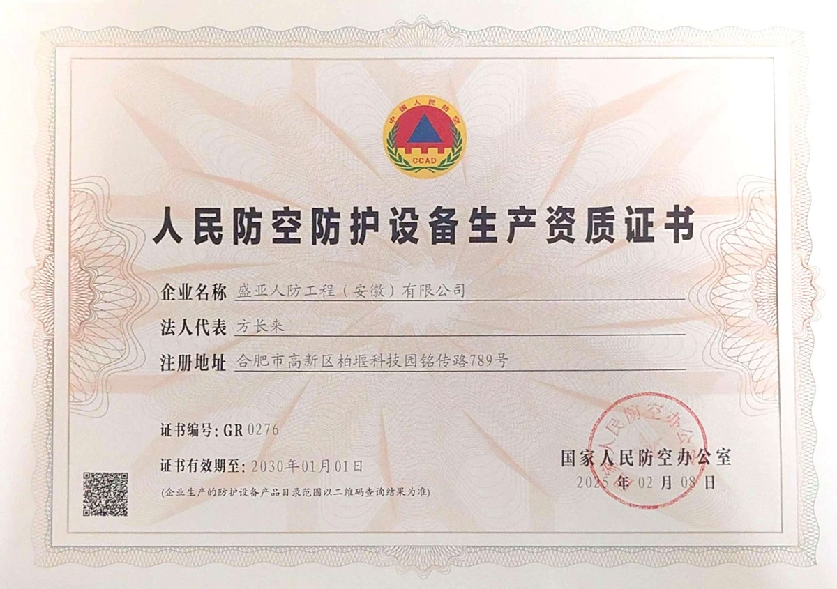 盛亚人防工程(安徽)有限公司(前身为安徽科盾人防工程有限公司)是经国家人民防空办公室批准的人防工程防护设备定点生产安装企业,多年来,公司凭借雄厚的实力、优质的产品、满意的服务,高度认可的品...